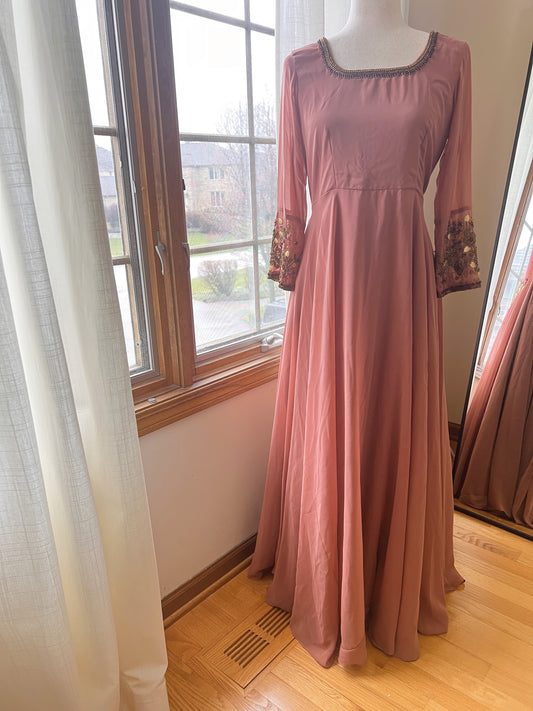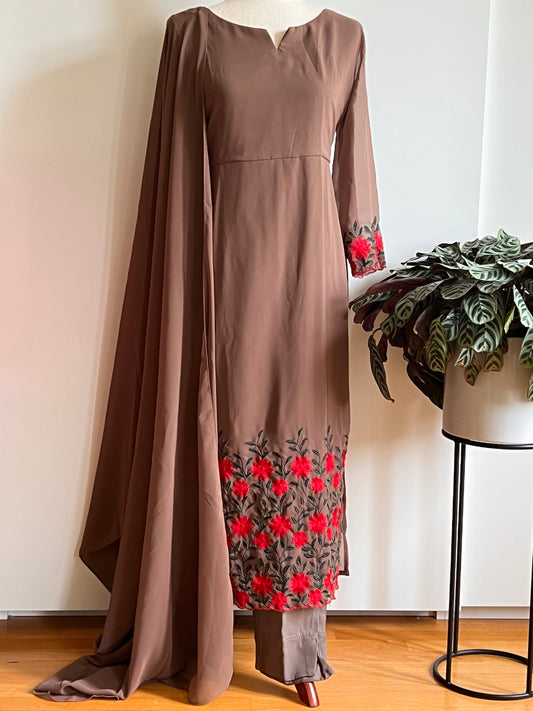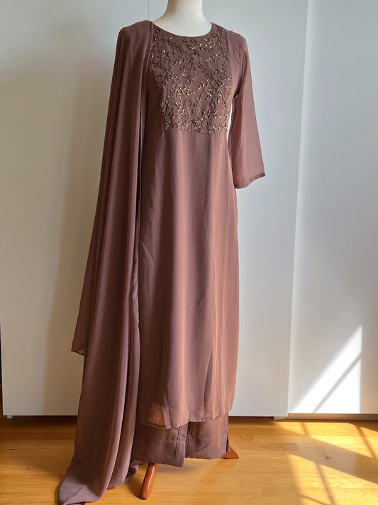 Pastel Brown Faux Georgette Slit Salwar Set -Size M