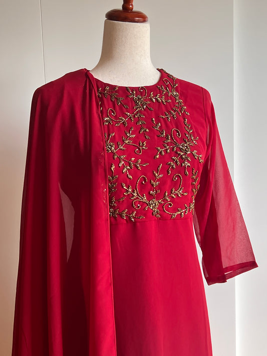 Reddish Maroon Faux Georgette Handwork Slit Salwar Set