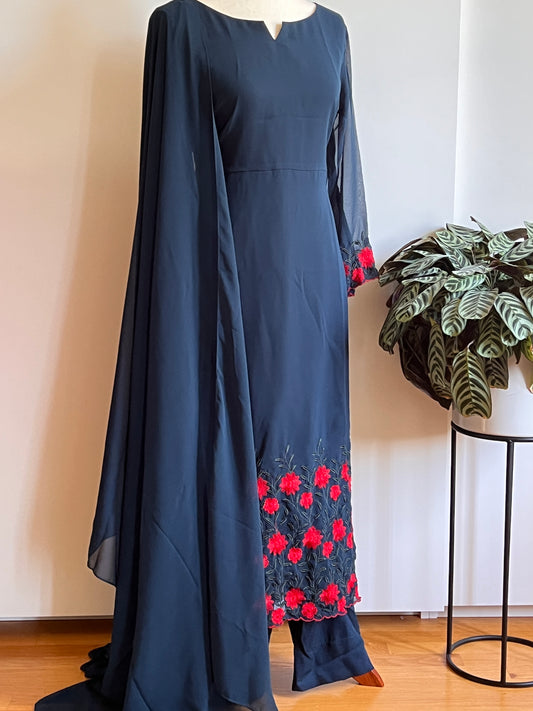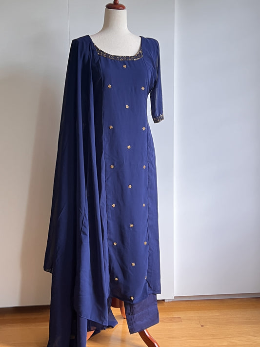 Navy Blue Faux Georgette Heavy Handwork Slit Salwar Set