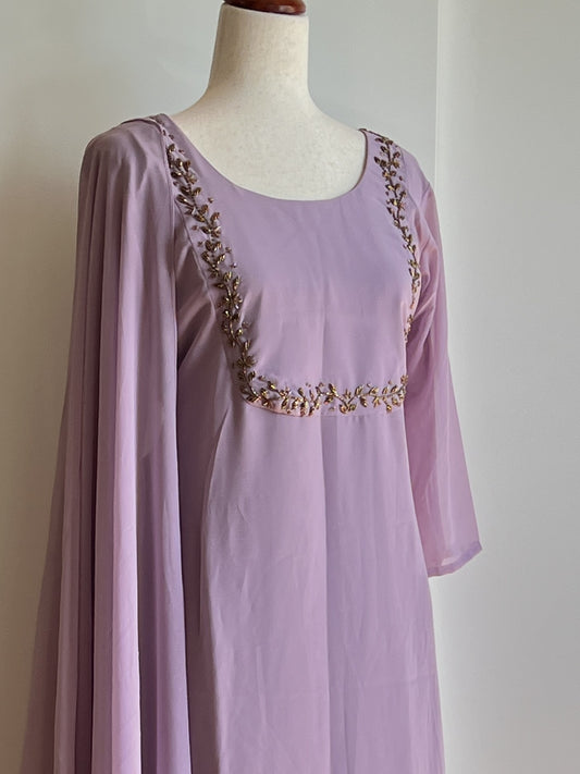 Mauve Lavender Faux Georgette Heavy Handwork Slit Salwar Set