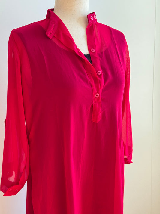Pink and Deep Navy Faux georgette sleeveless inner and collar neck slit top (SIZE- L)