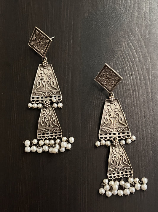 Oxidized and Pearl Earring