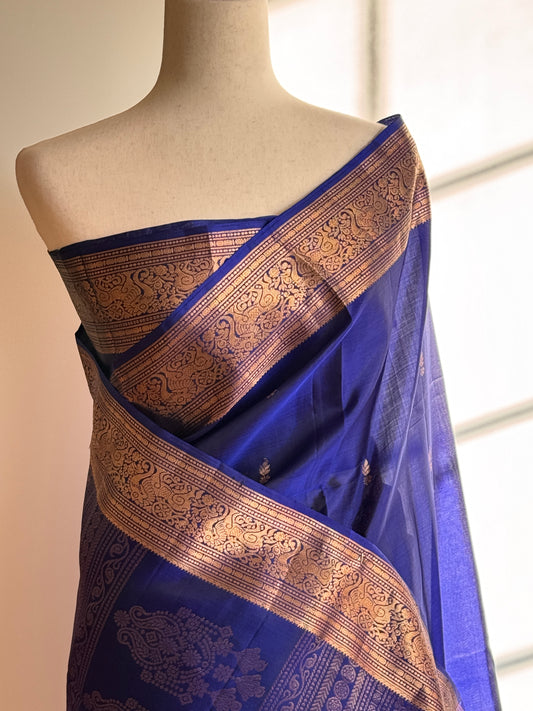 Pure soft silk saree royal blue with zari woven buttas and zari woven border