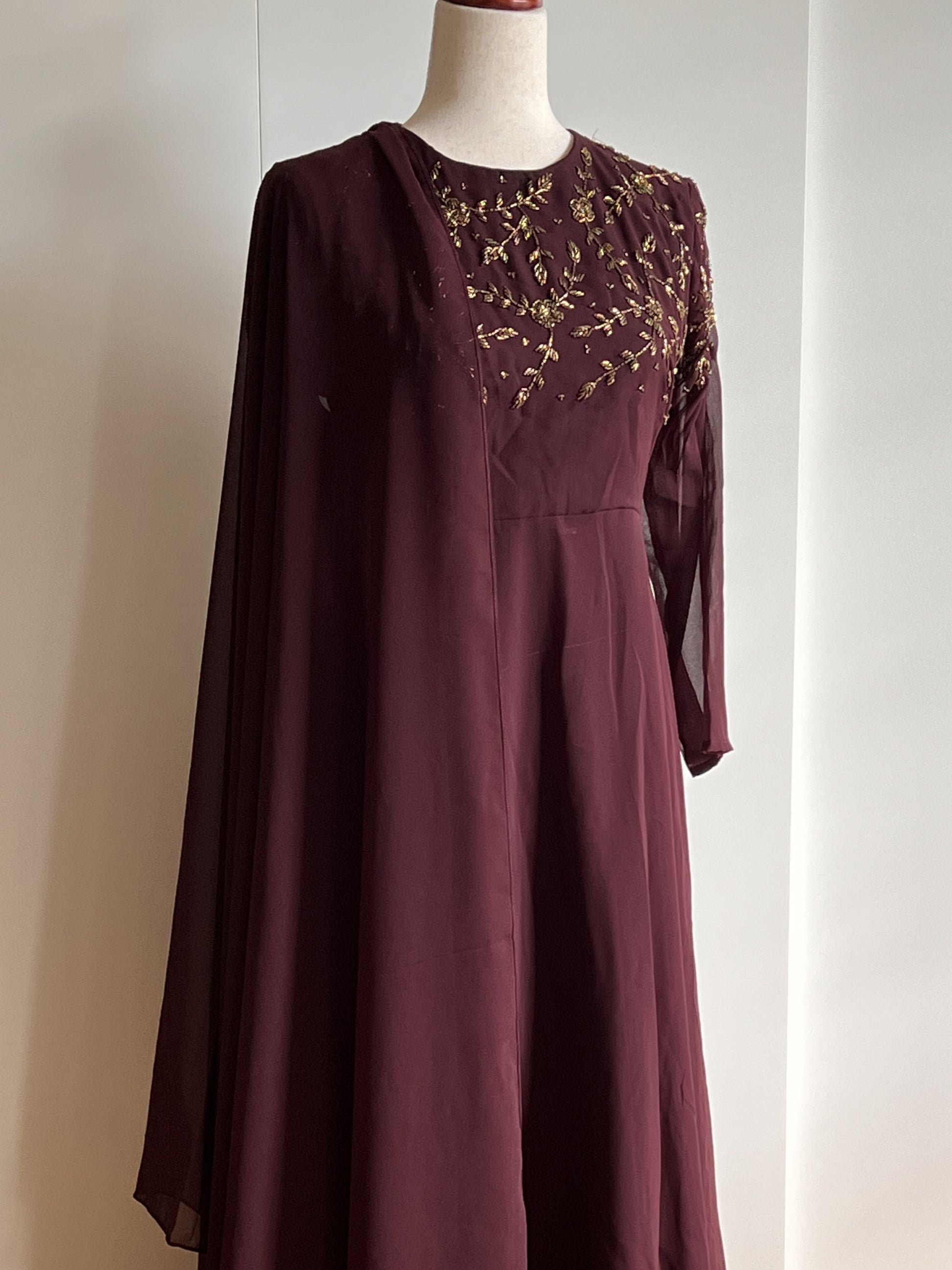 Color: Deep Wine, Material: Georgette