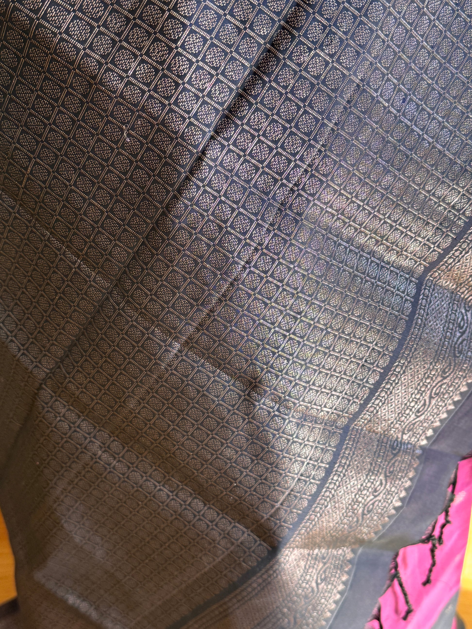 Saree: Dark Blue and Pink Soft Silk Saree